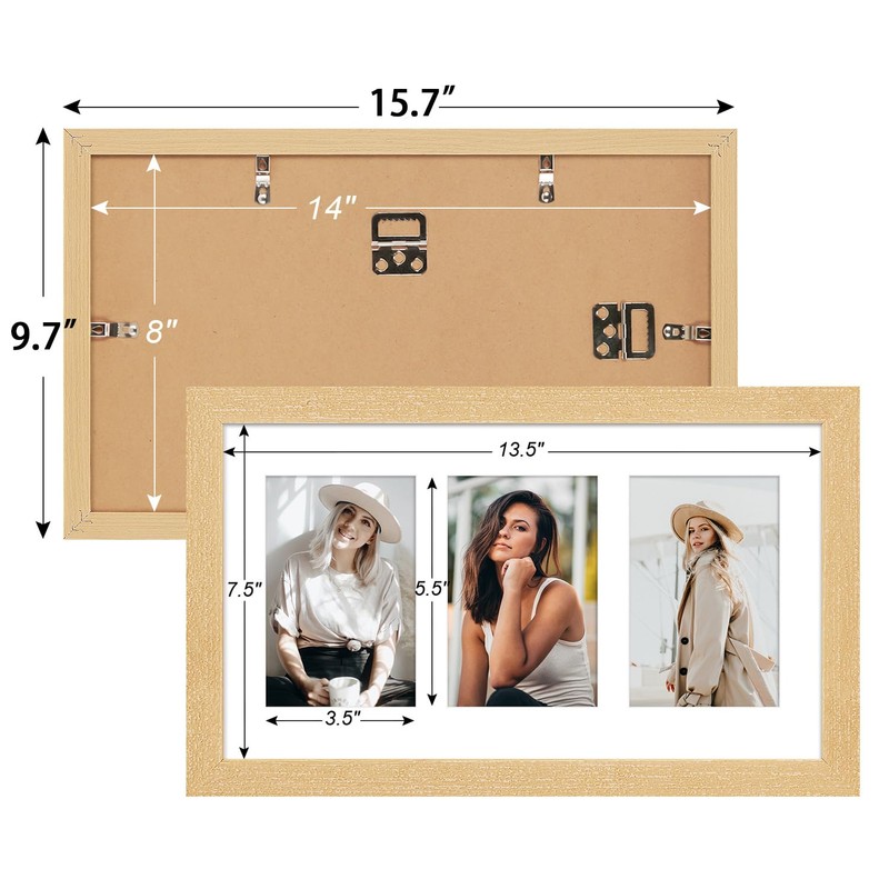 - 【VERSATILE PICTURE FRAME】Ksroecud 8x14 photo frames can hold 3 Openings 4X6 picture with mat, or 8x14 picture without mat. The frame comes with hanging hardware installed on back to hanging horizontally or vertically to fit your space available, and come with turn buttons to painlessly swap out photos.