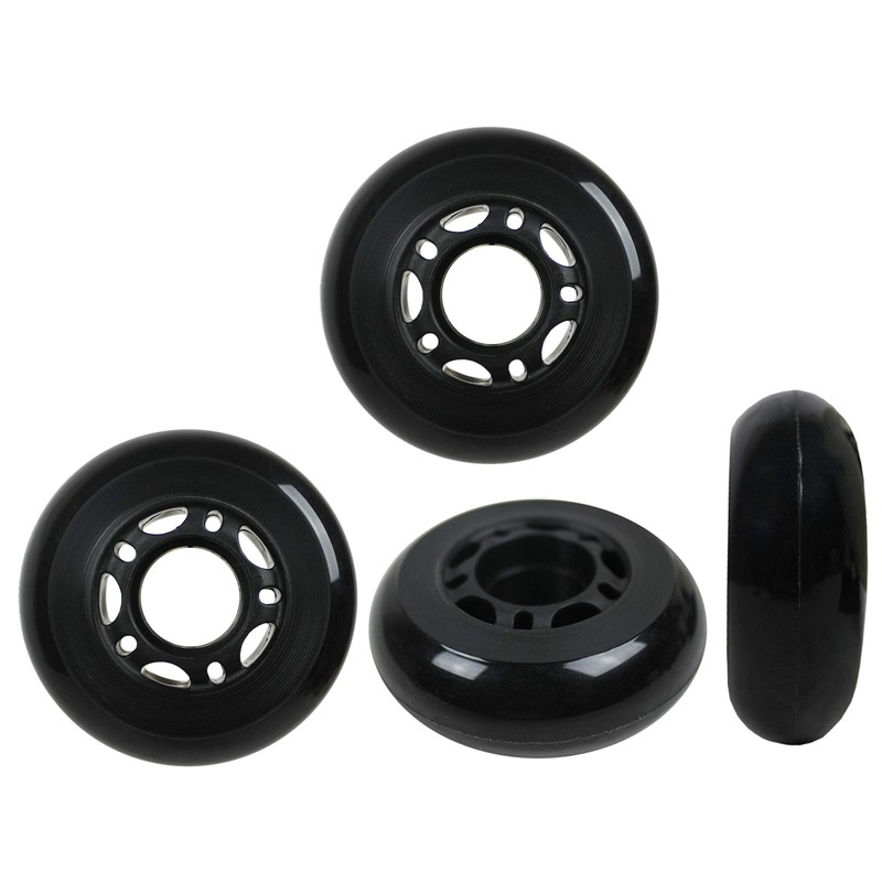 This listing contains 82a durometer inline wheels. These wheels are perfect for outdoor skating, and utilize the standard size 608 bearing hub. The 82a durometer rating provides a soft, smooth feel, with a decent life SPAN. For that reason, 82a is the most popular outdoor durometer rating. If you are looking for a longer lasting wheel, check out wheels with a durometer rating of 83a or higher. Wheels with a harder durometer rating will feel less smooth but last longer. Listing includes: quantity X4 wheels, measuring 64mm in diameter, and 82a in Hardness. Do you need bearings, spacers, oil, or a hop up kit make sure to check out our other listings for accessories you may need.