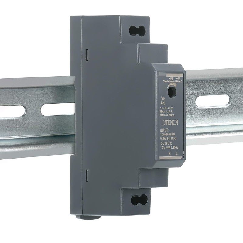 Kssvzz DIN Rail Power Supply 12V DC 1.25A 15W, Input 100-240V AC 50/60Hz DIN Rail Transformer for Home or Industrial Automation
