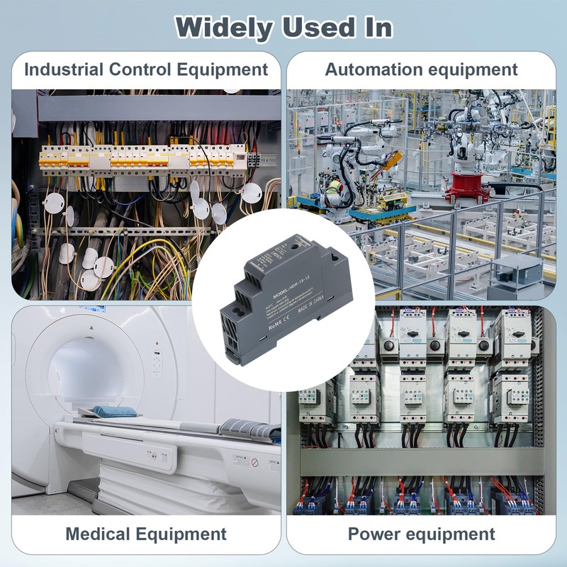 - 12 V DIN rail power supply: 12 V DIN rail power supply input voltage: AC 100-240 V, output voltage: DC 12 V, output current: 1.25 A, power: 15 W, efficiency: 89%, stable output voltage ensures efficient power supply.
