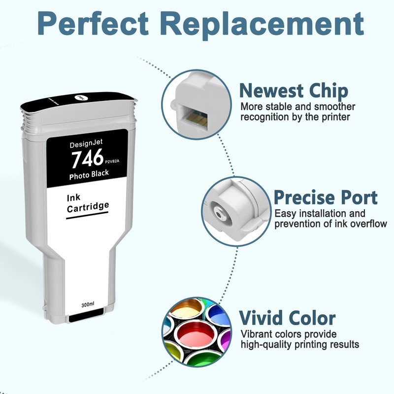 KSUMEI 746 Ink Cartridge HP 746 Photo Black P2V82A Replacement DesignJet Z6 DesignJet Z9+ Large Format Printer 300ml 1-Pack