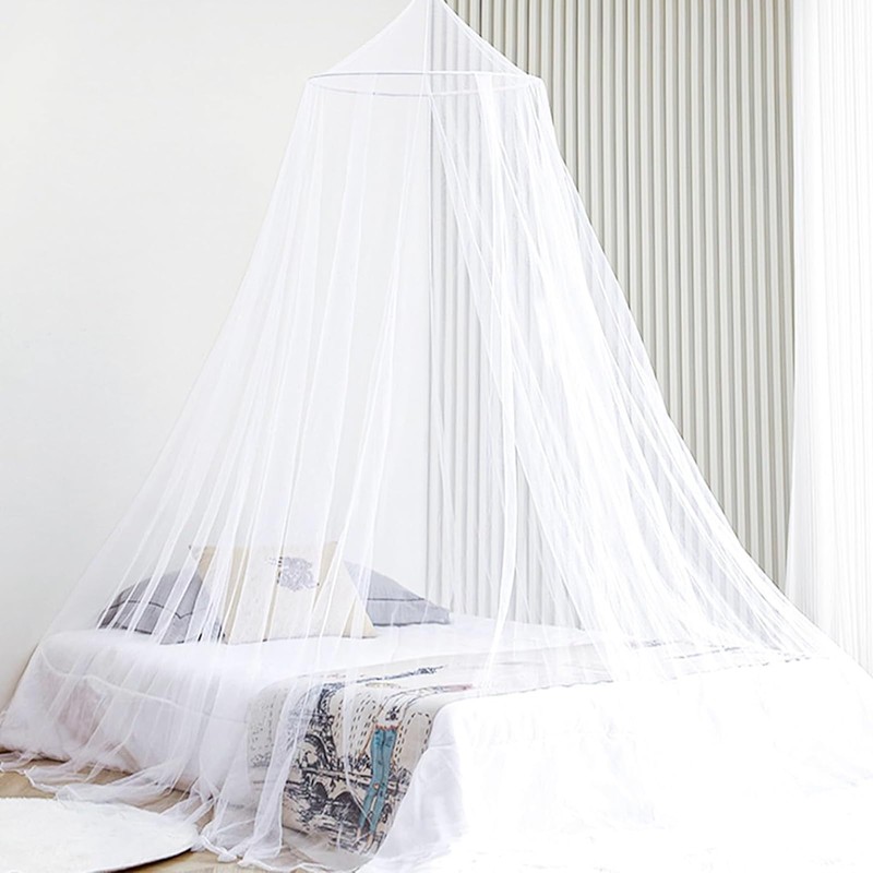 - 【SUPERIOR QUALITY DESIGN】 This mosquito net for bed is crafted from high-quality polyester fiber, offering exceptional softness, breathability, and durability. With over 220 mesh per square inch, it effectively blocks even the tiniest mosquitoes and insects, ensuring a bite-free night's sleep. The large round canopy, measuring 60cm (23.6 inches) in diameter and in height 230cm (90.55 inches) and the maximum circumference at the bottom of the mesh canopy net is 800cm(315 inches), is engineered to fit most bed sizes, including single, double, and king-size, providing comprehensive protection wherever you rest.