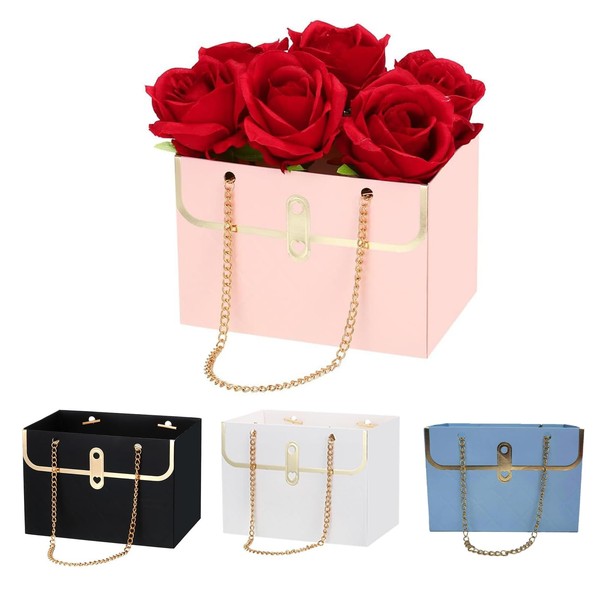 KSVFTB 4 Pcs Flower Box, Flower Boxes For Bouquets, Bouquet Boxes, Flowers Boxs for Wedding Graduation Party Birthday Party Gift Wrap Bag (Pink Blue Black White)