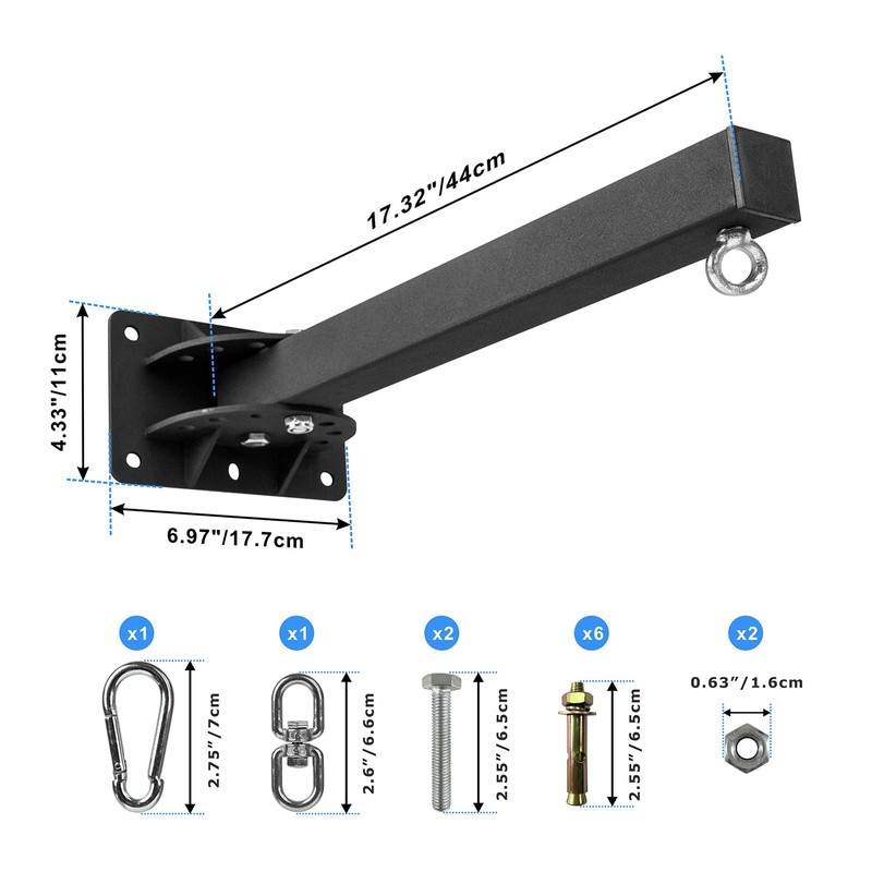 - Heavy steel structure--Wall mount heavy bag hanger use of strong heavy steel manufacturing, worry-free use, with excellent performance. The 5mm thick base with six screw points can be securely mounted on walls and elsewhere, keeping it safe even during and after intense boxing training.