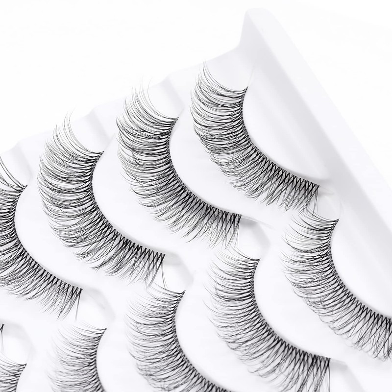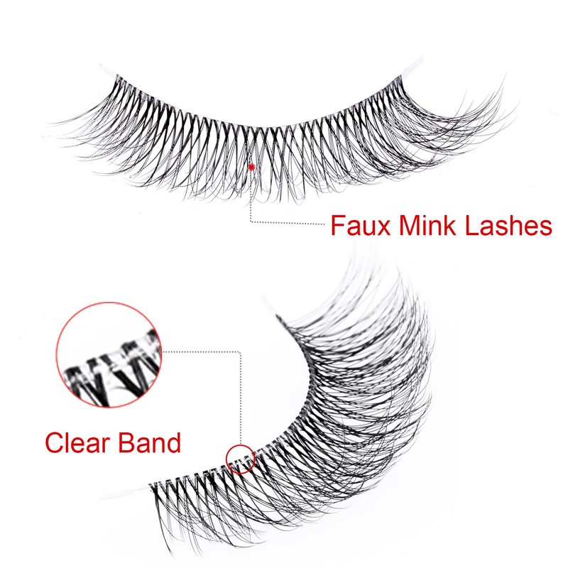 KSYOO Cat Eye Lashes Wispy Natural Look, D Curl 10-18mm Clear Band 3D Natural False Eyelashes Multipack, Soft Faux Mink Wispy Eyelashes (B3 Clear Band, 5 Pair (Pack of 1))