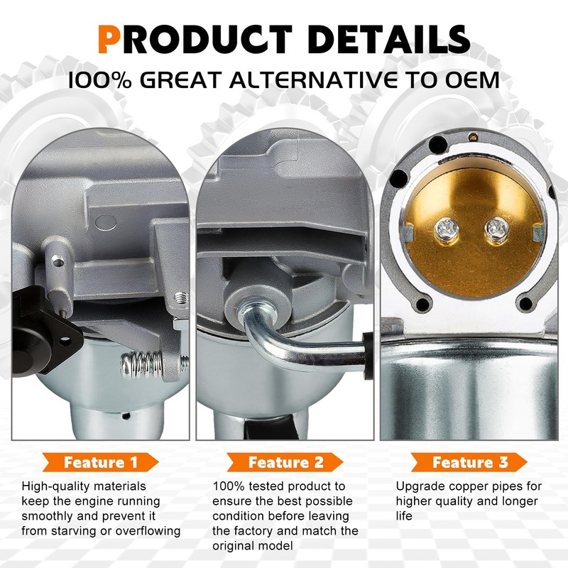 KT735 Carburetor for Kohler 7000 Series Engines KT725 KT730 KT735 KT740 KT745 22HP 23HP 24HP 25HP 26HP replaces 1685319-S 3285363S 3285367S Carb with Gaskets