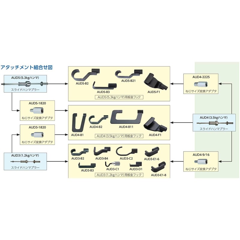 - AUD4-9/16 (screw size) Puller side (concave side): M18 x 2.0; Work target side (convex side): W9/16-12