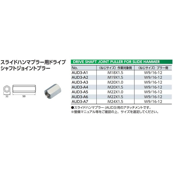 • (Screw Size) Puller Side: W9/16-12; Work Side: M22X1.5