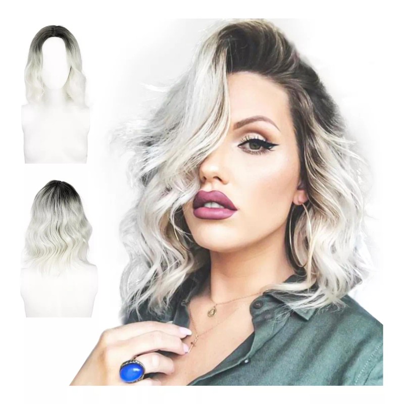 Ktmouw Peluca De Cabello Natural Cortas Ondulada Gris Para Mujer