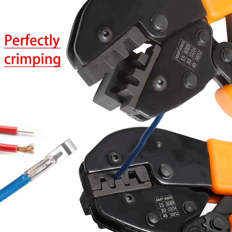 - Purpose: Crimping tool is designed to crimp 15/30/45AMP quick disconnect power terminal connectors. Making quick connection of red/black battery connector modular power connectors.