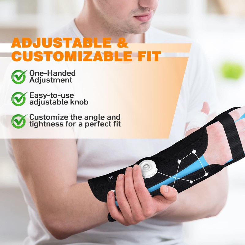 KTQUICK Schlaganfall Rest Handschiene, Handgelenkstütze mit verstellbarem Knopf und abnehmbarer Handgelenkschiene, Hand& Handgelenkbandage für Karpaltunnel, Schlaganfall Erholung, Linke Hand-XL
