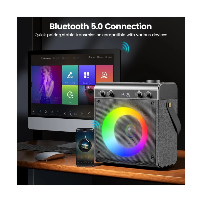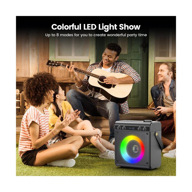 - LED Light Show & TWS Mode Pairing: Transform any space into a vibrant concert hall with the built-in LED light show! The dynamic lights pulse and dance to the music, creating an immersive and unforgettable karaoke experience. Pair 2 speakers via TWS for 360 stereo immersion