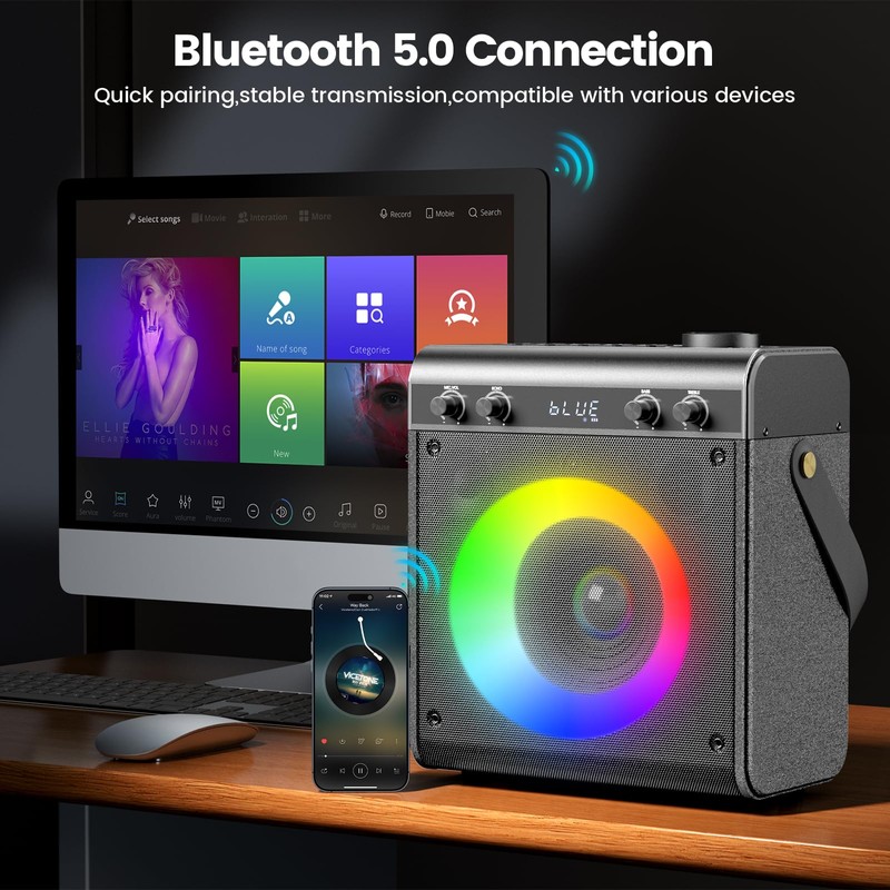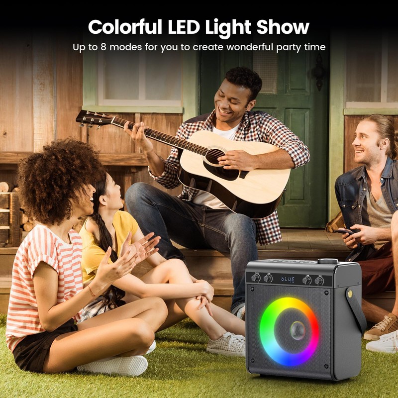 - Colorful LED Light: This karaoke machine with 2 wireless microphones comes with 8 modes colorful RGB lights and multiple lighting effects, allowing you to switch between different colors of light at will. Colorful LED lights create a pleasant and energetic party atmosphere, you can enjoy an ultimate karaoke visual experience with it. What are you waitting for? This karaoke machine with lyrics displaye must be your best choice for party!