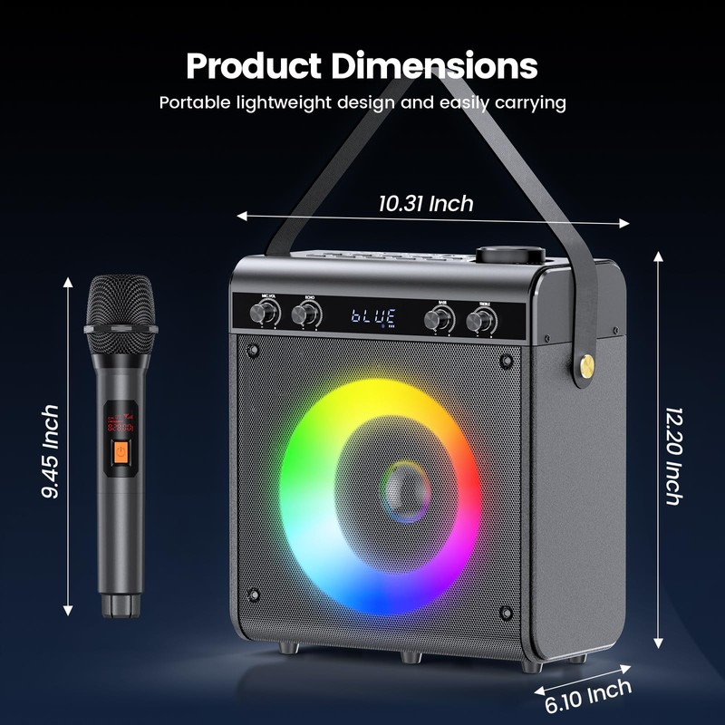 - Multifunctional Karaoke Speaker: This kareokee machine with bluetooth and wireless microphone for adults can perfectly meet your various usage needs. Adopting lastest Bluetooth 5.0, it provide high-speed pairing and stable signal transmission. This speaker with microphone also supports USB, TF Card and AUX in and come with 2 Bluetooth wireless microphone, which can perfectly replace speaker, radio and media player, bring you all-in-one multifunctional convenient use.