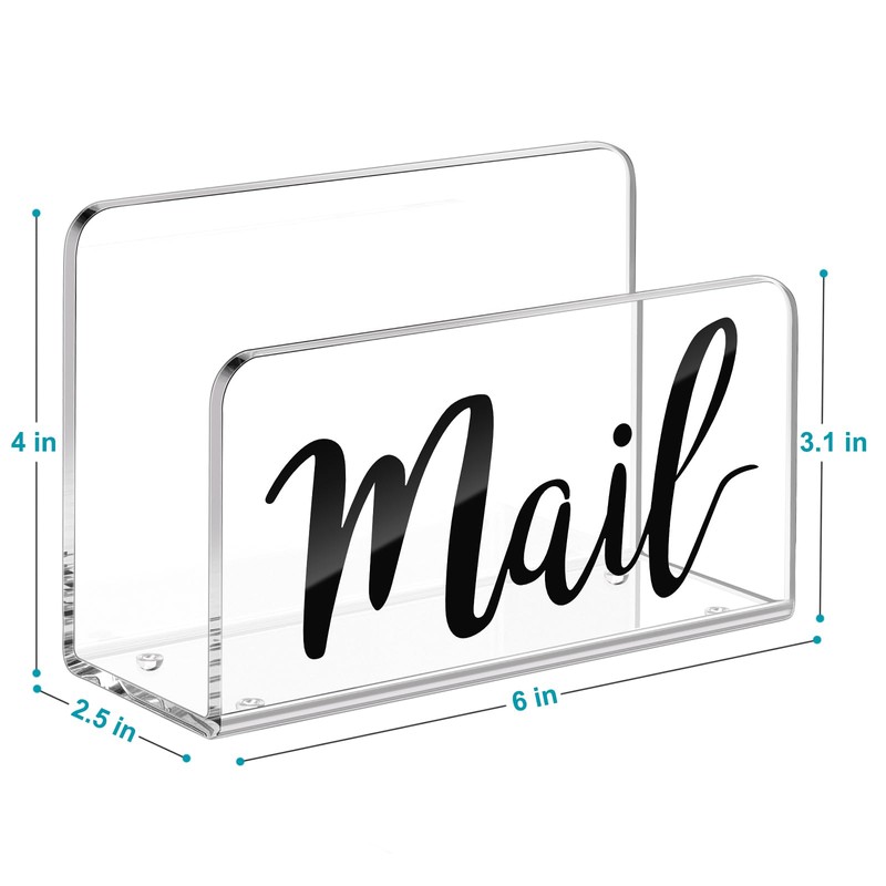 - Distinctive and Functional: Designed with stylish print Mail in script font, the mail organizer allows you to instantly store and browse your letter, paper, business card, document, notepad. This acrylic clear mail organizer is functional in use and classic for home or office decor.