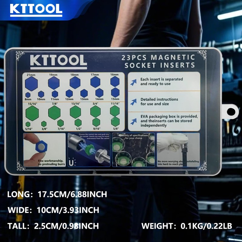 KTTOOL 23 Pcs New SAE and Metric Magnetic Socket Inserts Tool Set, 5/16" - 15/16", 8mm - 21mm Universal Magnetic Socket Insert