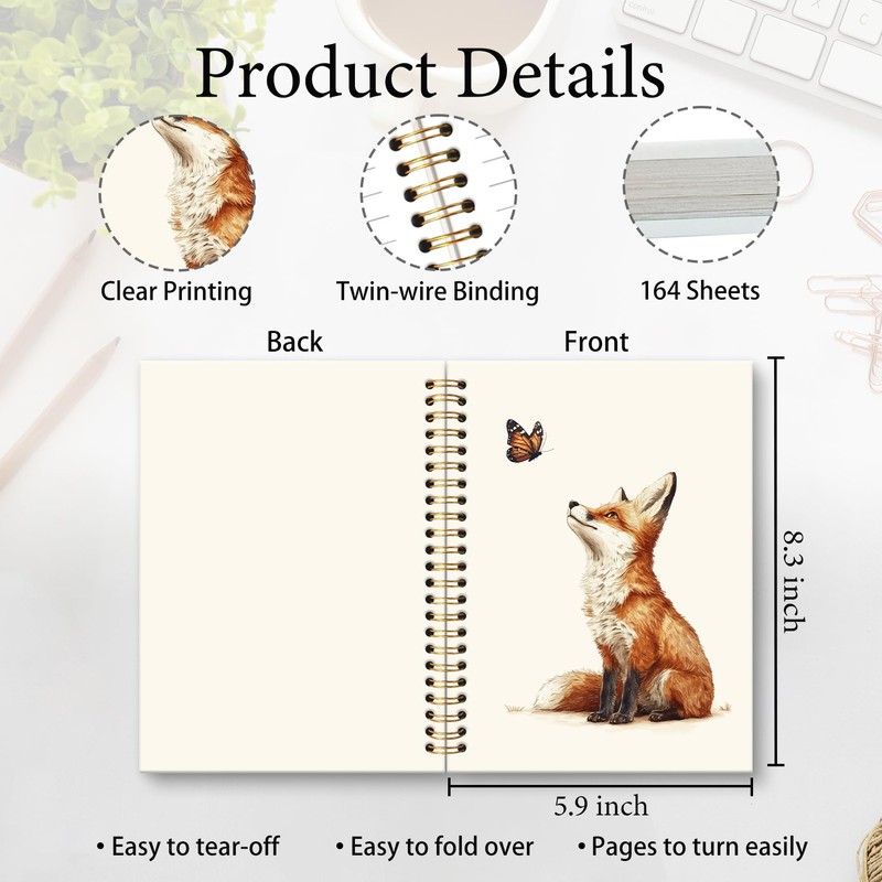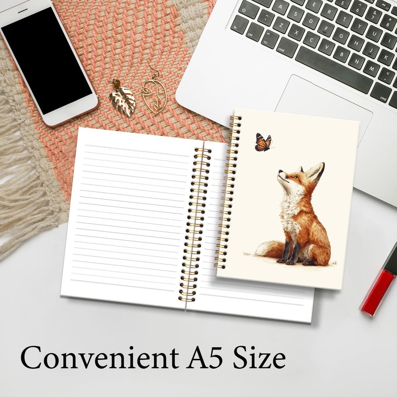 KTYHD Fox Notebook Journal 5.5x8.3in, Woodland Animals Butterfly Aesthetic Journal for Writing, Fox Themed Gifts Notebooks for Note Taking, Hardcover Spiral Notebook