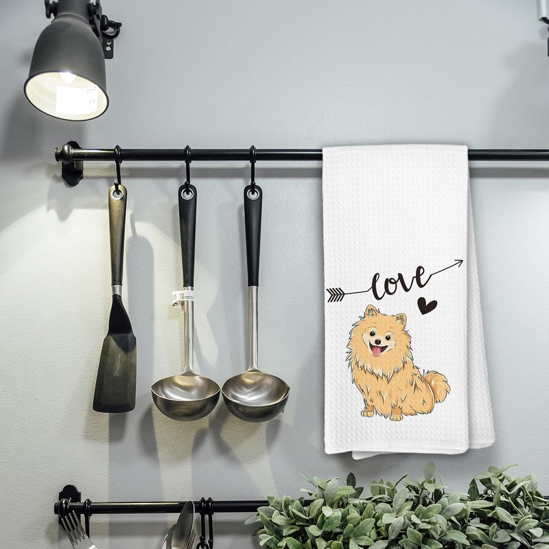 KTYHD Pomeranian Kitchen Towels, Pomeranian Valentine Gifts Dish Towels for Kitchen, Pomeranian Puppy Dog Love Decorative Hand Towels for Bathroom Kitchen, Valentine Dog Lovers Gifts for Women
