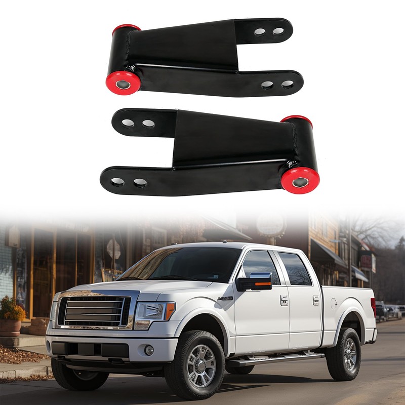 - Fitment: This Adjustable drop shackles compatible with 2004-2019 Ford F150. Will give a minor drop from 2"to 3". Suitable for 4wd & 2wd suspensions with 3-inch leafs. There must be 3-inch wide leafs.