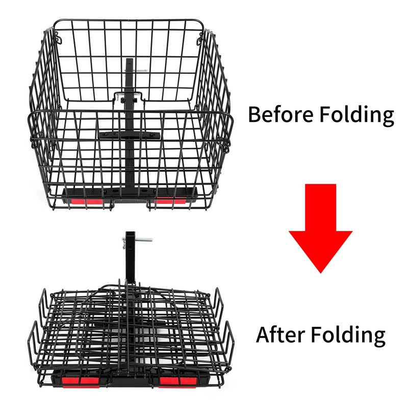 - Features: Basket Dimension: 15-1/2in X 12-7/8in X12-3/4in. Made of strong steel, high hardness, not easy to bend and deform. The surface is dip-coated to make the color of the rear basket uniform and beautiful.
