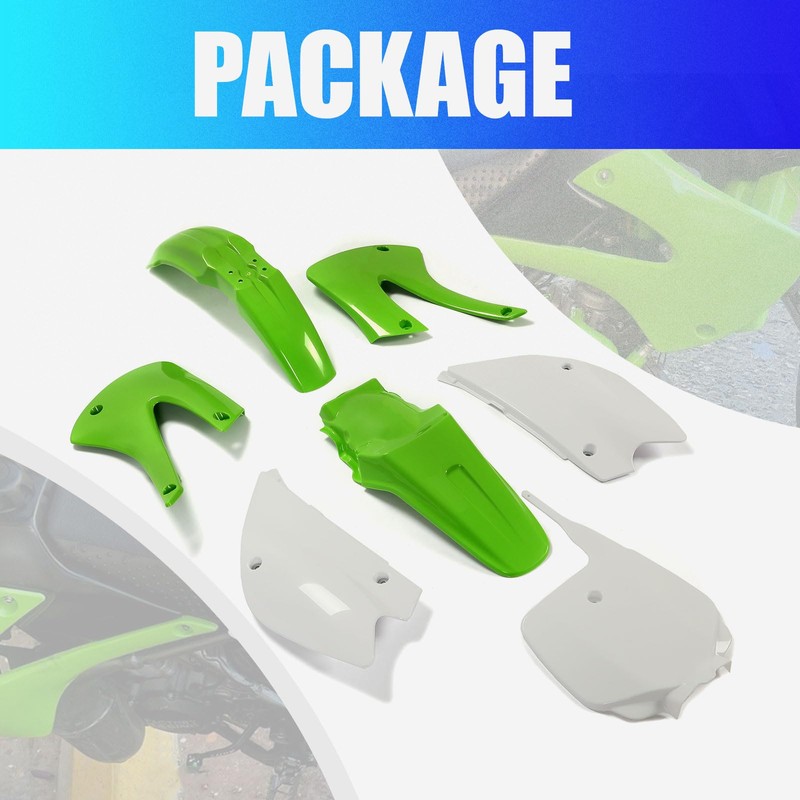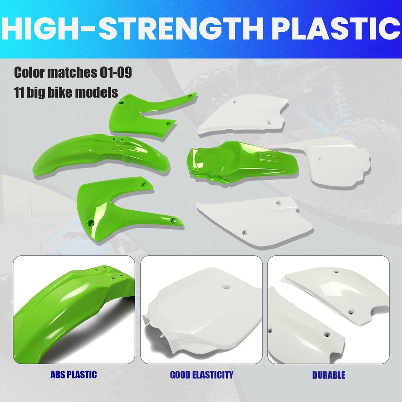 - Condition: Direct replacement strength plastic fairing body cover kits. High Quality Material: ABS plastic, good elasticity, heat resistance and durable. Color: Green + White