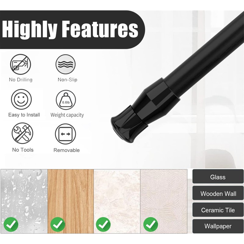 - 【Enough Tension】The diameter is 1.3 cm/0.5 inch, the non-slip rubber head is 2 cm/0.78 inch in diameter and the whole length is 40-70 cm/15.8-27.6 inch. Built-in spring, after rotating out the sliding door security bar, give enough tension to it to play a fixed role.