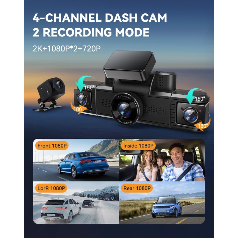 - 【4 Channel Dash Cam】The kuayvan 4-Channel Dash Cam has 4 lenses, It can capture the front, rear, left, and right sides of the vehicle simultaneously. Which offering 2 movie modes: FHD 1080Px4 rear, or 2K1080Px2+720P left, right and rear resolutions.