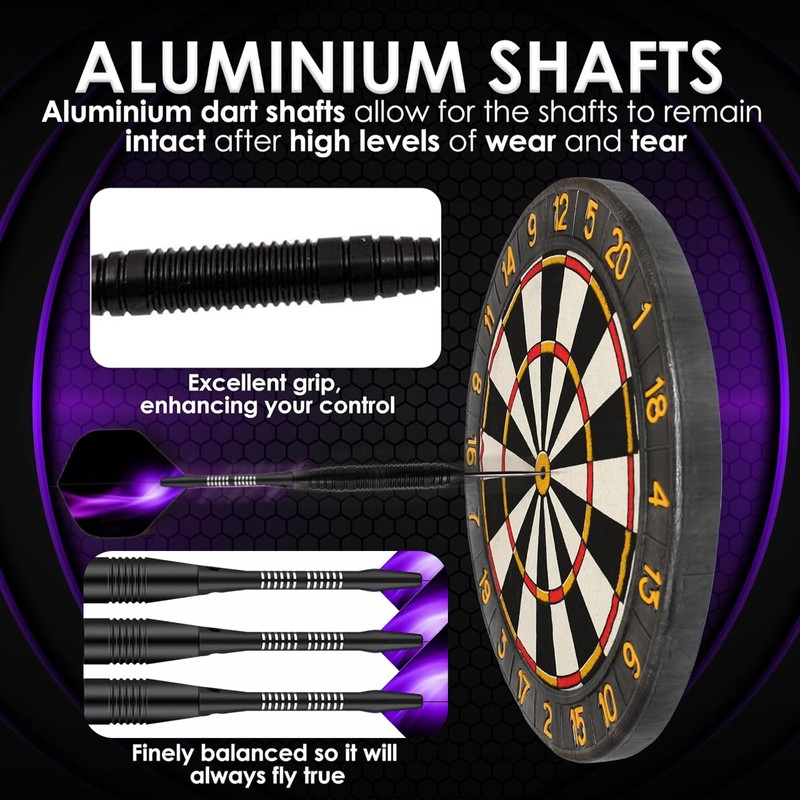 - 【Premium Material】: With resistant aluminum shafts and long, sharp steel tips, our darts ensure superb durability and performance. They'll stick to the dartboard firmly without bouncing off, giving you an optimized experience.