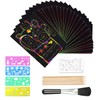 - This scratch picture craft set includes 60 colourful 13 x 18 cm scratch sheets, 6 bamboo pens, 5 randomly selected colour templates and a cleaning brush - everything you need for a creative craft experience.