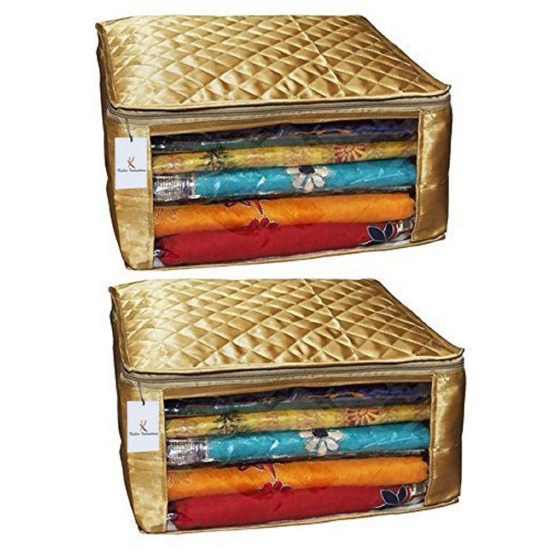 Kuber Industries Saree Cover Set of 2 Pcs Large Size in Golden Satin Wedding Gift