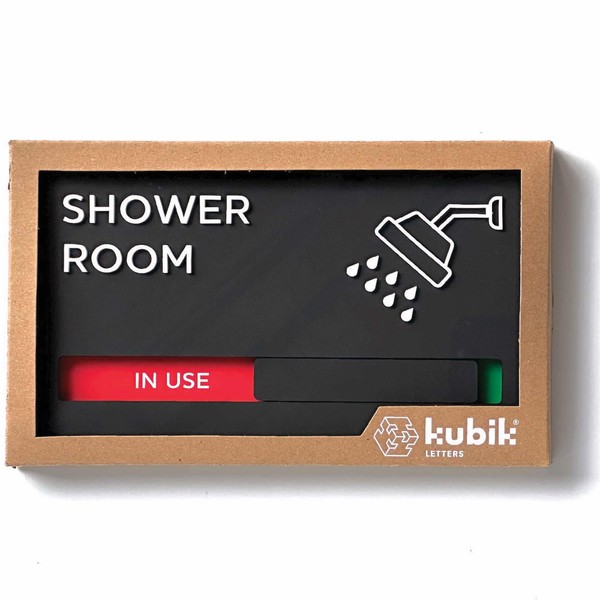 Kubik Letters Shower Room Sign with Slider for Dual Messages Room Status (Available or in USE)