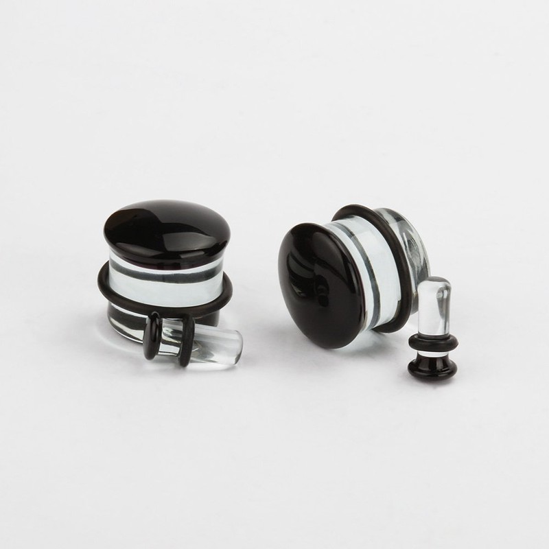 KUBOOZ(1 Pair Black-surface Glass O-Ring Ear Plugs Tunnels Gauges Stretcher Piercings 6g