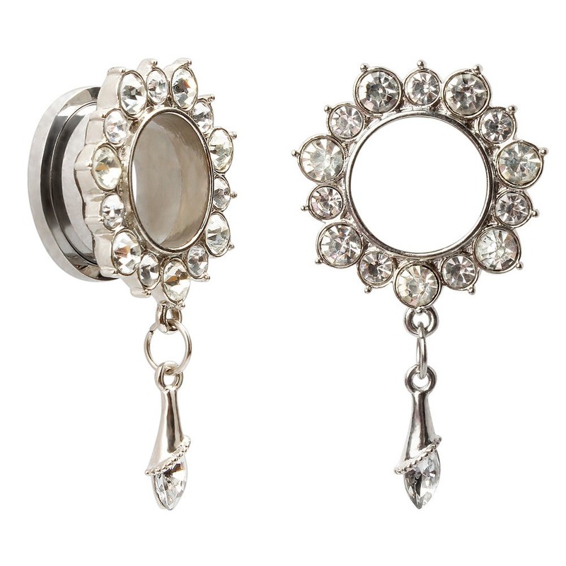 KUBOOZ Earrings Plugs Tunnels Jewellery Gemmed Carnations Flower Drop Carnations Flare Stainless Steel Gauges, Stainless Steel