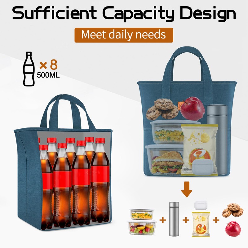 - Higher and Large Capacity: The lunch box for women size is 11.4"H x 9.5"L x 5.2"W, fit for lunchbox containers, snacks, fruit, water bottles. The spacious main pocket is enough to hold up 8 x 500ML sodas, the front pocket can storage keys, phones, tissues