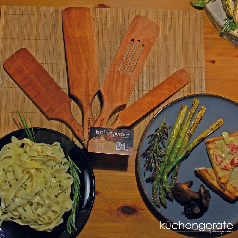 Kuchengerate Wooden Spurtles Kitchen Serving Curved Tools-Cookware - Set of 4 - Stir Scoop Serve and Spread Non-Coated Wood Spoon Spatula Eco Friendly Kitchen Utensils Tools - Boxed Best Gift Idea