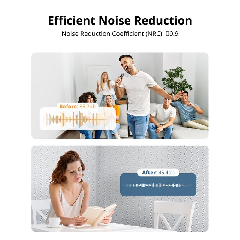 - Wide Application: Self-Adhesive Sound Proof Panels are widely used in acoustic treatment for various spaces. Including homes, offices, recording studios, home theaters, conference rooms, and more. Effectively improve the acoustic environment and enhance sound quality and comfort.