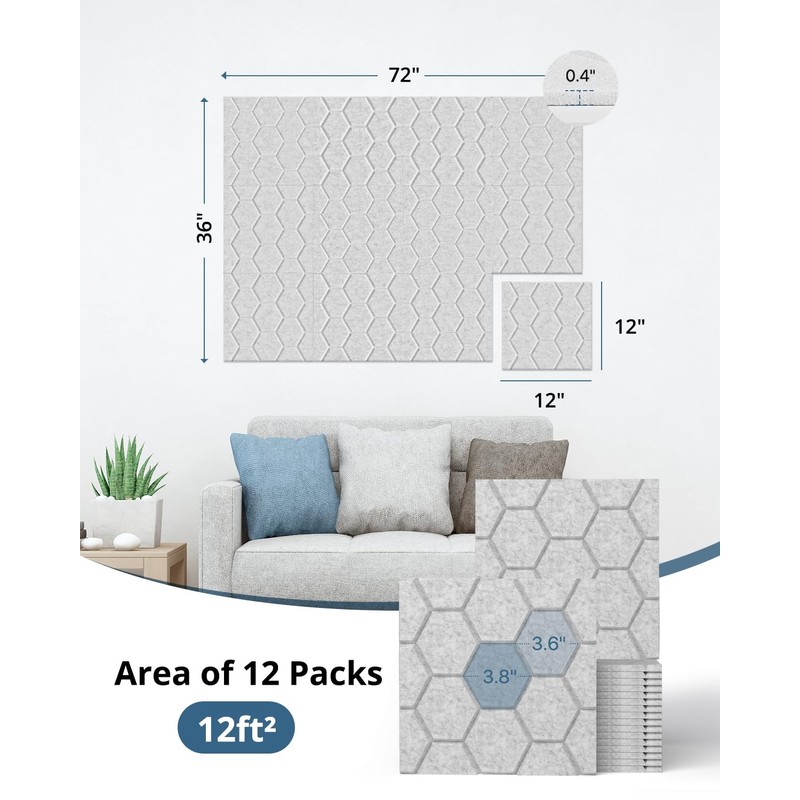 - Honeycomb Acoustic Wall Panels: Honeycomb shapes adds beauty to your interior. Complements a variety of interior decorating styles. Provides sound absorption and enhances visual appeal. They can be cut and assembled into different shapes for customizable wall designs.