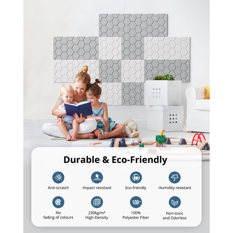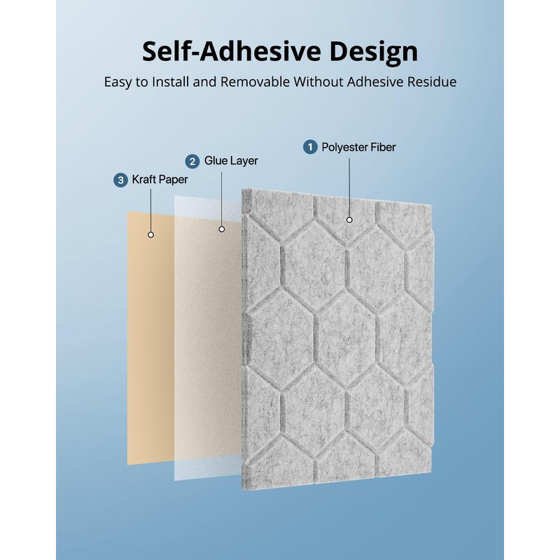- Premium Eco-friendly Material: Made from high-quality polyester fiber material. Soundproof adhesive panels are durable and wear-resistant. It is safe and non-toxic with no unpleasant odors. Suitable for use by adults, children, and pets.