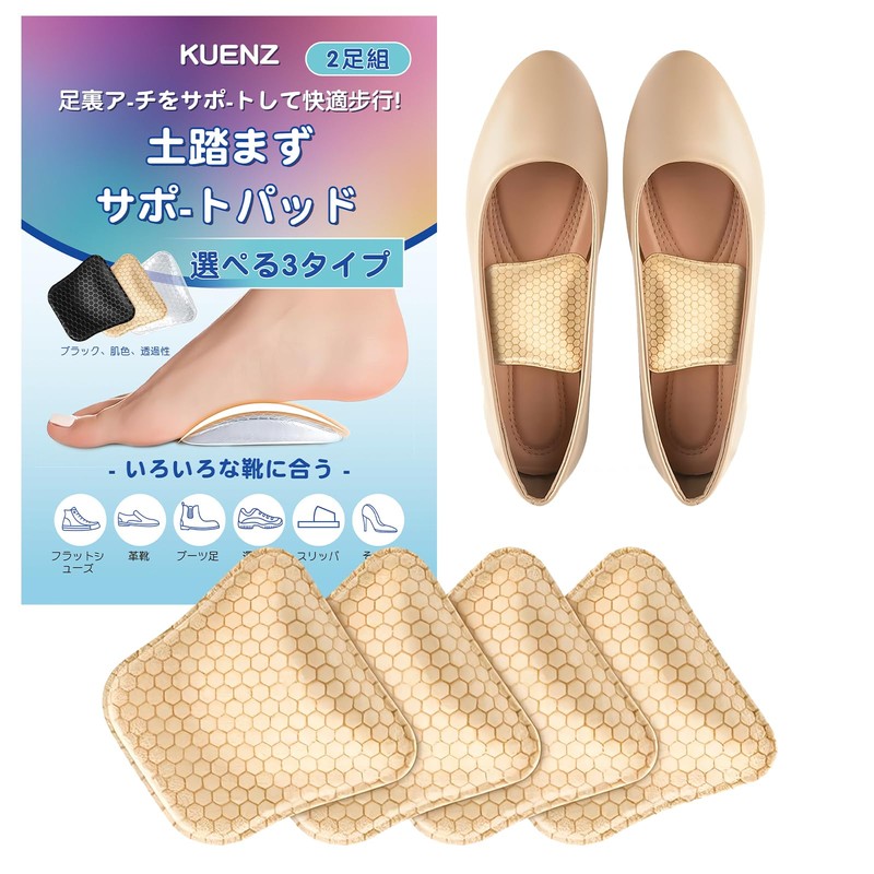 KUENZ Arch Support, Arch Support, Insole, Shock Absorption, Protective Pad, For Standing, Running, Climbing, Standing Work, Sports, Unisex (Beige, 14 mm)