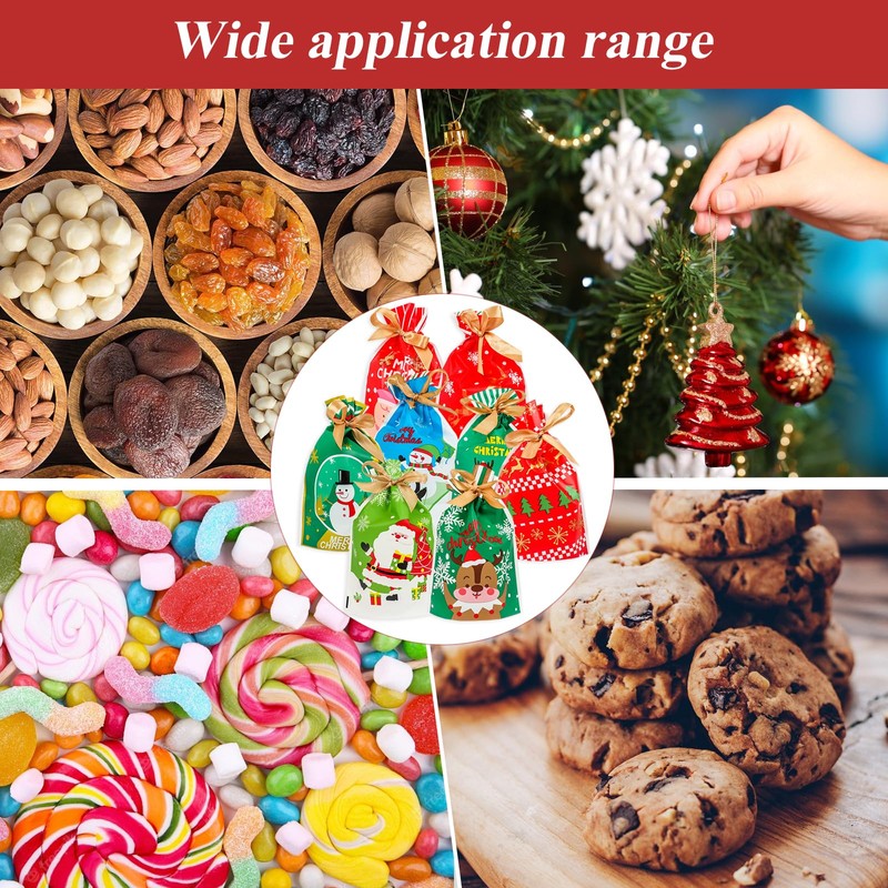 - [High Quality Material] These Christmas gift bag are made of high quality opaque plastic, which is not only lightweight and easy to carry, but also very tear resistant and can be reused many times. Designed for durability, Christmas drawstring bags is perfect for storing everything from small gifts to holiday party favors.