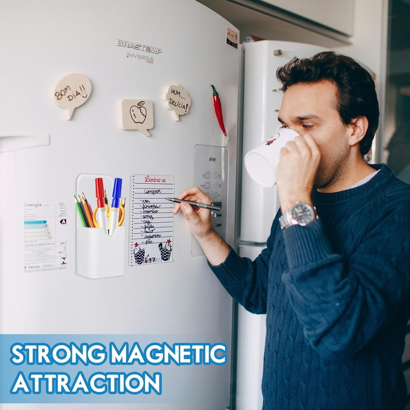 - Strong & Versatile Magnetic Pen Holder for Whiteboard & Fridge: Upgrade your workspace with our magnetic pen holder, designed for seamless organization on any metal surface! With dimensions of 12 × 5.6 × 2.2 cm (4.72 × 2.2 × 0.86 in), these compact yet spacious holders easily fit pens, pencils, scissors, and more. The powerful magnetic holder securely attaches to whiteboards, fridges, filing cabinets, or any steel surface, keeping essentials within reach. Perfect for offices, kitchens, or workshops, this magnetic pen holder for whiteboard eliminates clutter while adding a modern touch. Its lightweight yet sturdy build makes it a must-have for home and professional use!