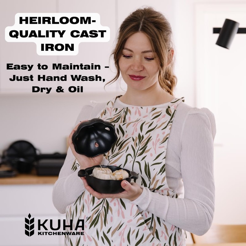 KUHA 5 Inch Cast Iron Garlic Roaster for Oven, Grill & BBQ – Pre-Seasoned Garlic Baker with Vented Lid & Handle - Roast Garlic, Potatoes & Veggies