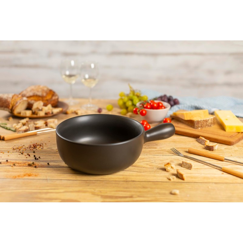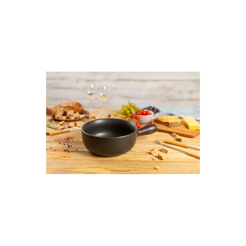 After use, leave the fondue pot filled with cold water to stand for a short time to facilitate removal of cheese residues (do not leave it in the water bath)