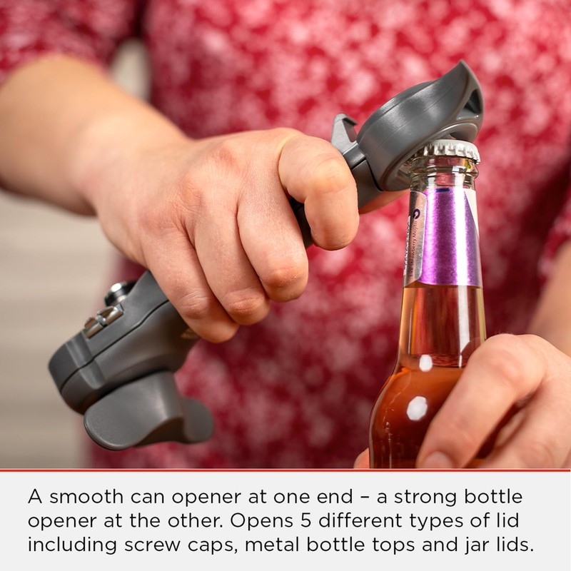 • PERFECT FOR COOKS WITH LIMITED DEXTERITY – can openers for arthritic hands are a welcome alternative to old fashioned kitchen gadgets that can be stiff and awkward to use, and this versatile 5-in-1 tin, bottle and jar opener is no exception