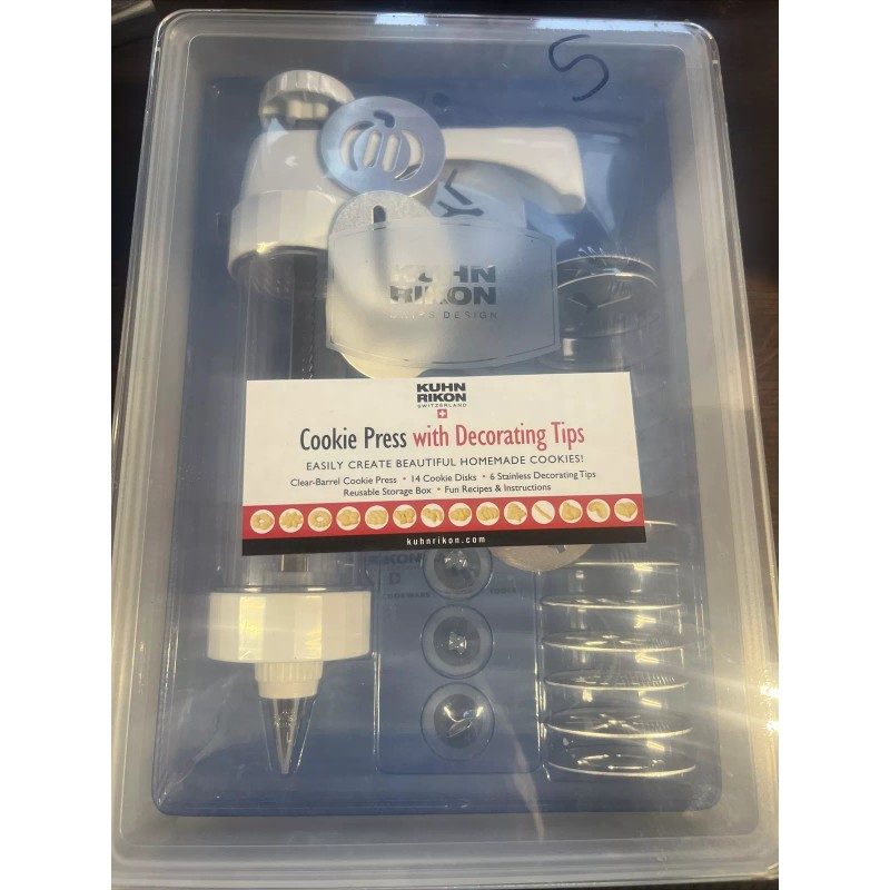 Kuhn Rikon Clear Barrel Cookie Press 14 Shape Discs 6 Decorating