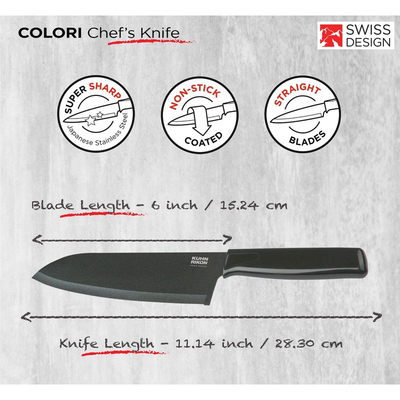 Kuhn Rikon Colori Chef's Knife with Safety Sheath, 6 Inch, Black