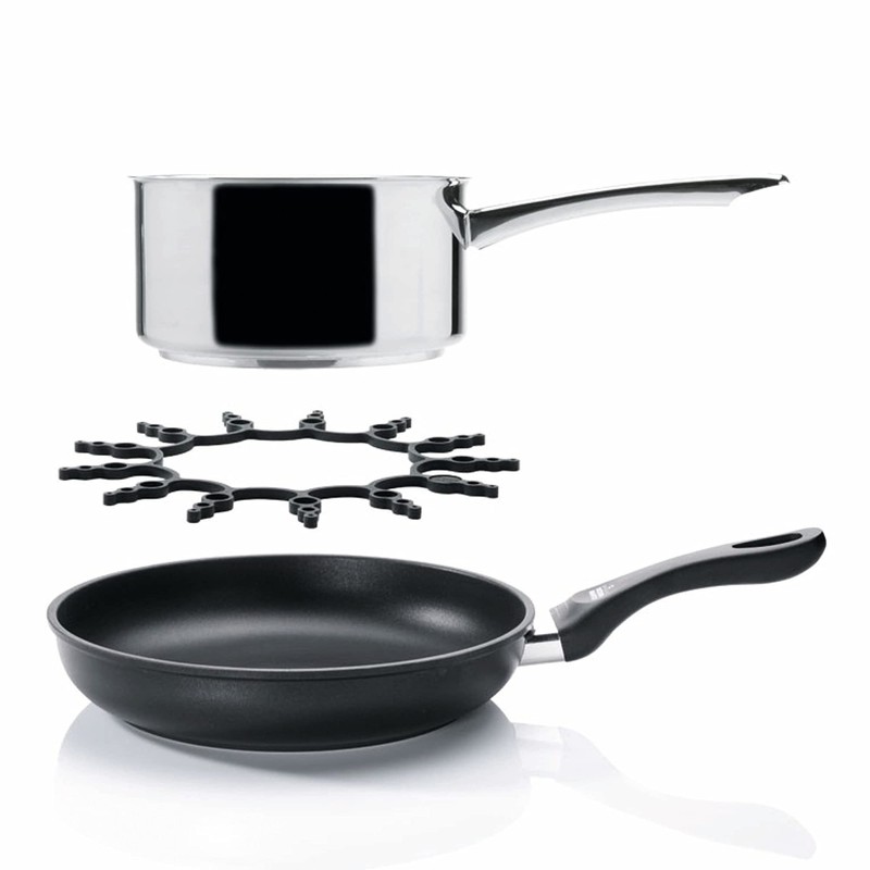 - Dual-function as a trivet or pan guard