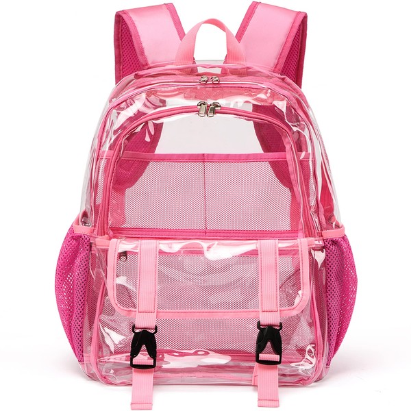KUI WAN Clear Backpack, Large Clear Bag Heavy Duty PVC Transparent Clear Bag for Stadium,School,Pink