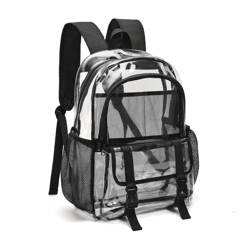 - Clear backpack heavy duty:KUI WAN clear backpack bag is made of 0.8mm heavy-duty transparent PVC materials, and all seams are reinforced with double stitches which makes them avoid tearing and hold heavy loads easily. Transparent large clear-view allows quick inspection for safety purpose