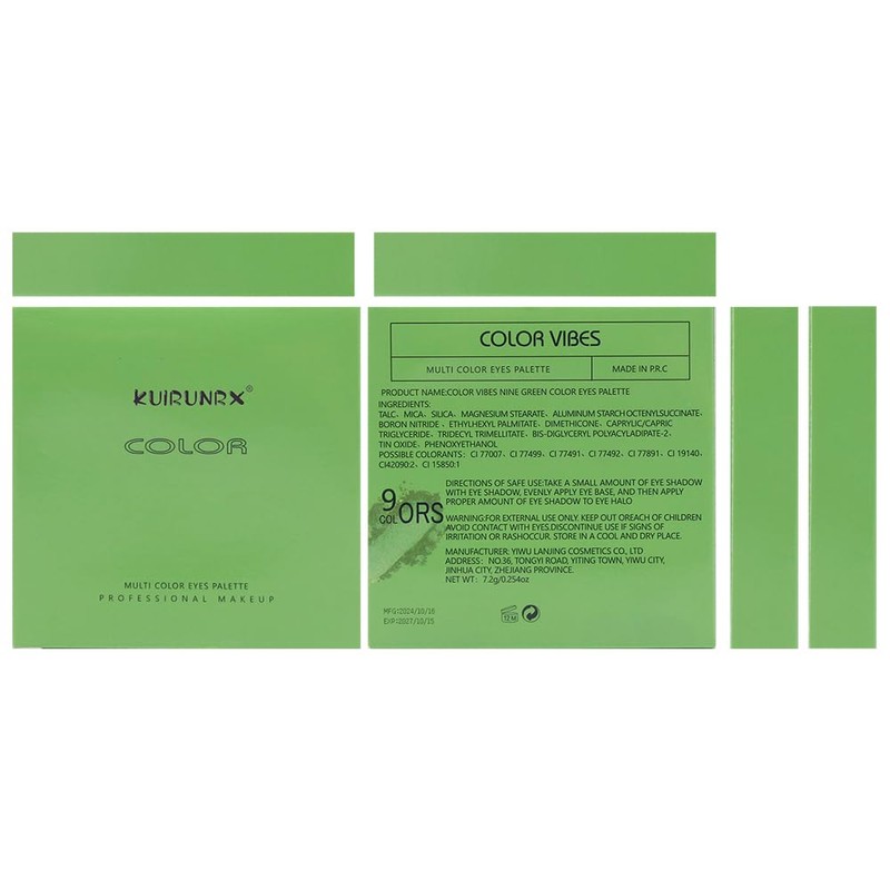 KUIRUNRX® Lidschatten Palette, 9 Farben Grüne Glitzer Lidschatten Palette, Matte und Glitzernde Lidschatten Paletten, Glitzernde Augen-Make-up-Kosmetik Für Alle Gelegenheiten